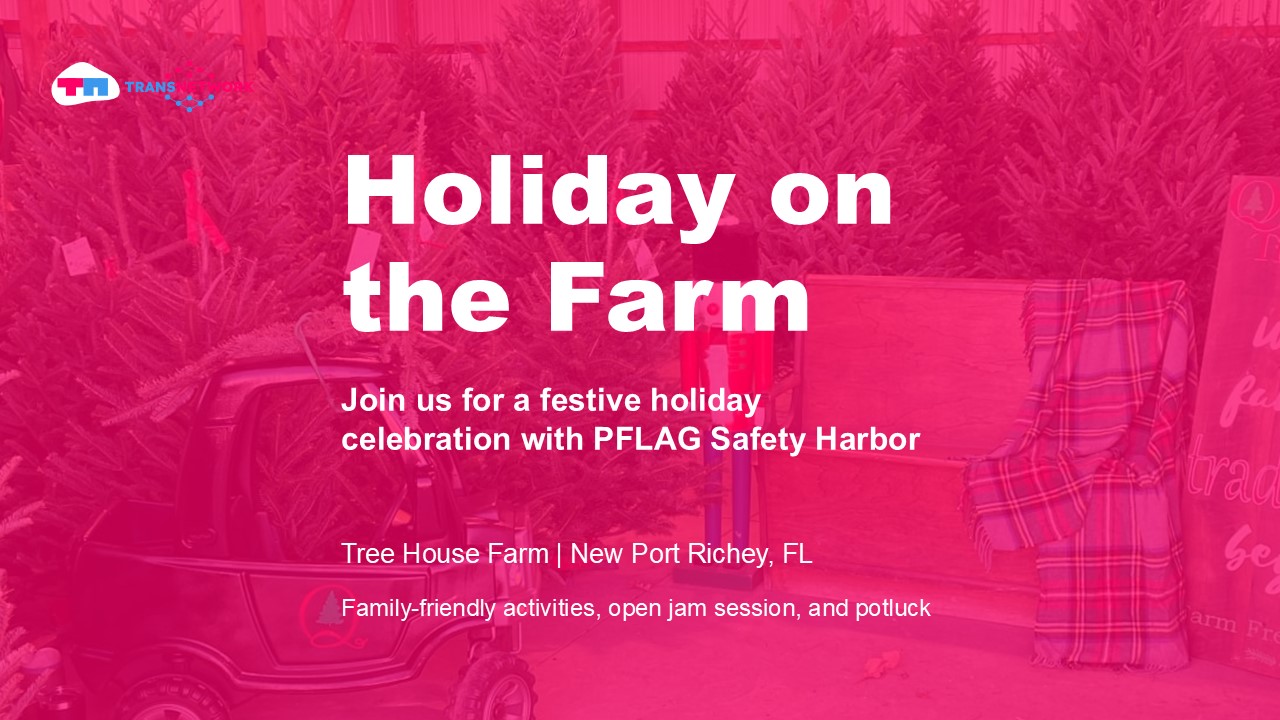 Celebrate the Holidays with TransNetwork and PFLAG Safety Harbor at “Holiday on the Farm” – a festive, family-friendly gathering to enjoy community connections and holiday cheer!